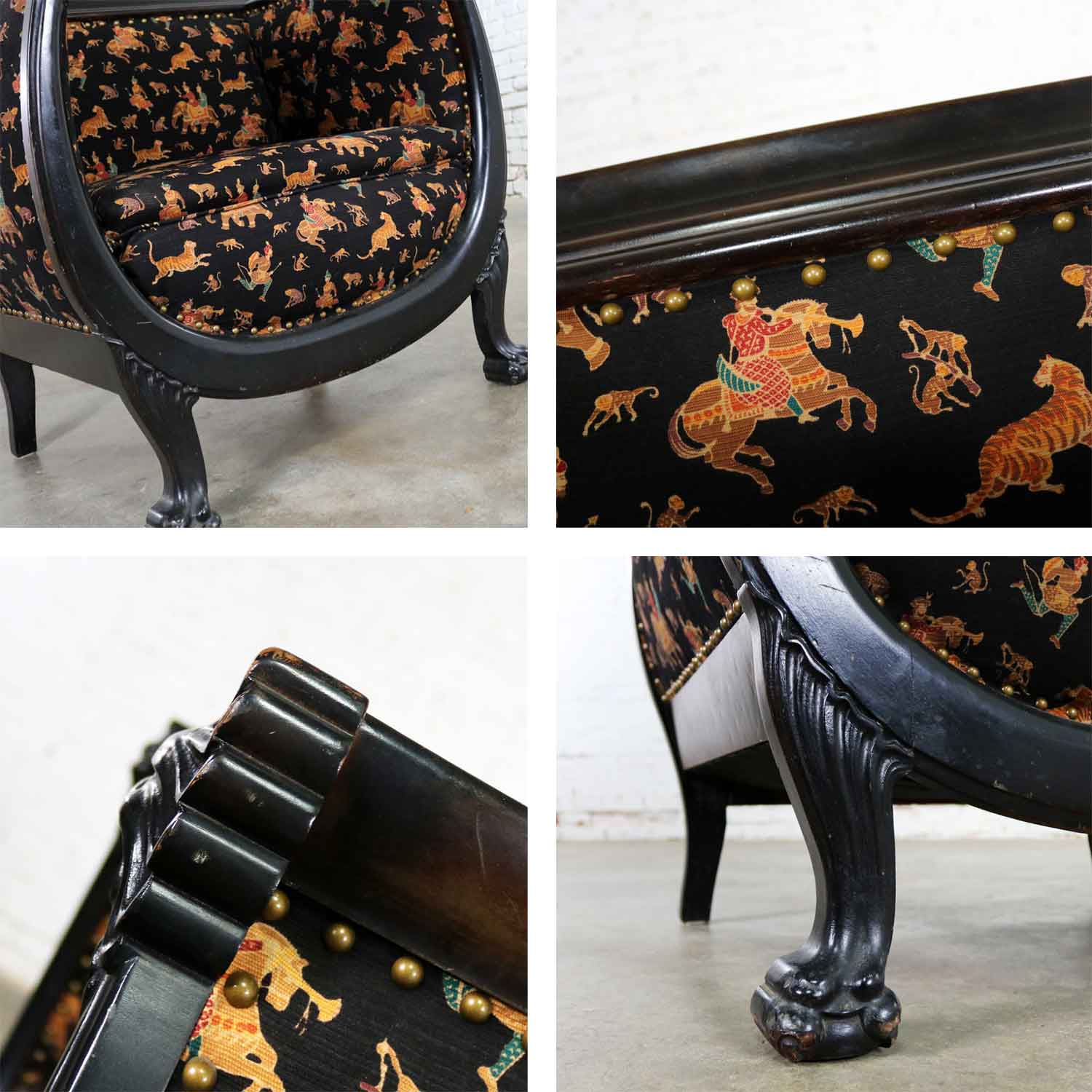 Antique Victorian Wishbone Barrel Chair Carved Lion’s Heads and Claw Feet Ebonized