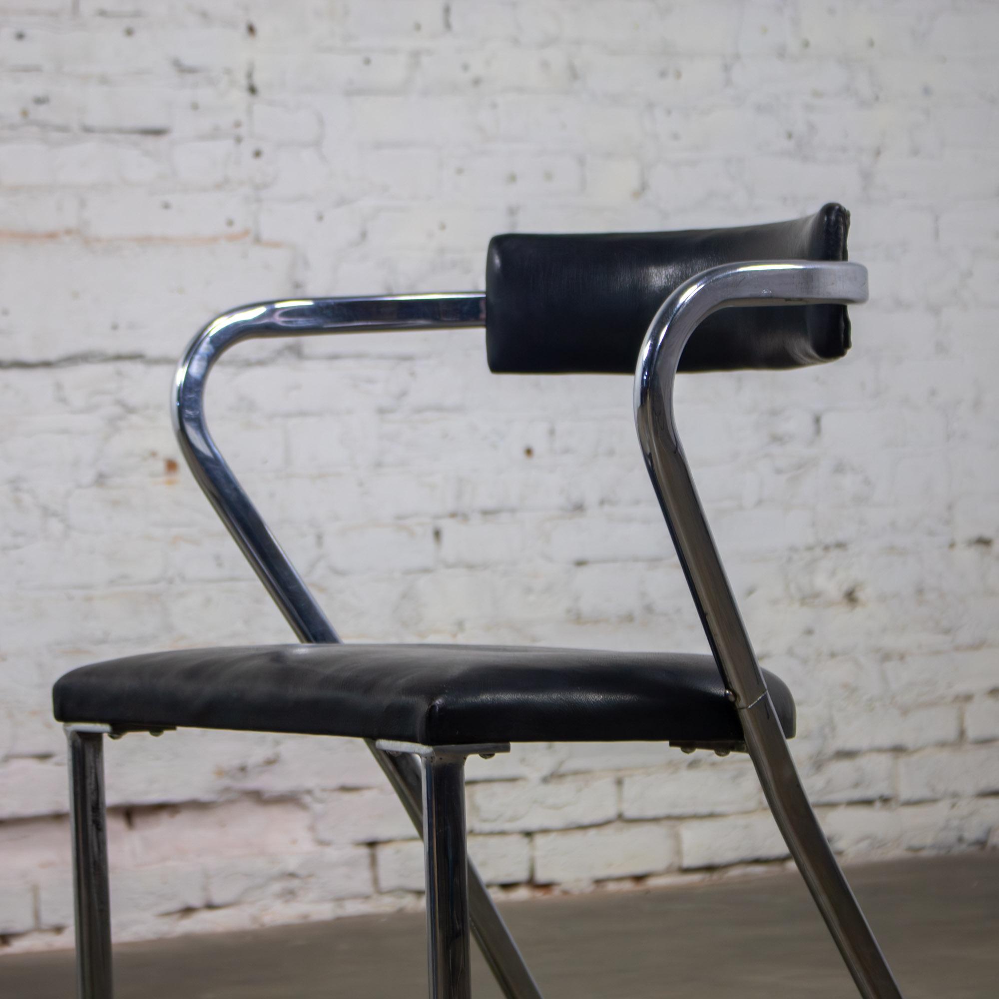 1920-1930’s Art Deco Streamline Moderne Side Chair Black Vinyl & Chrome Manner of Gilbert Rohde