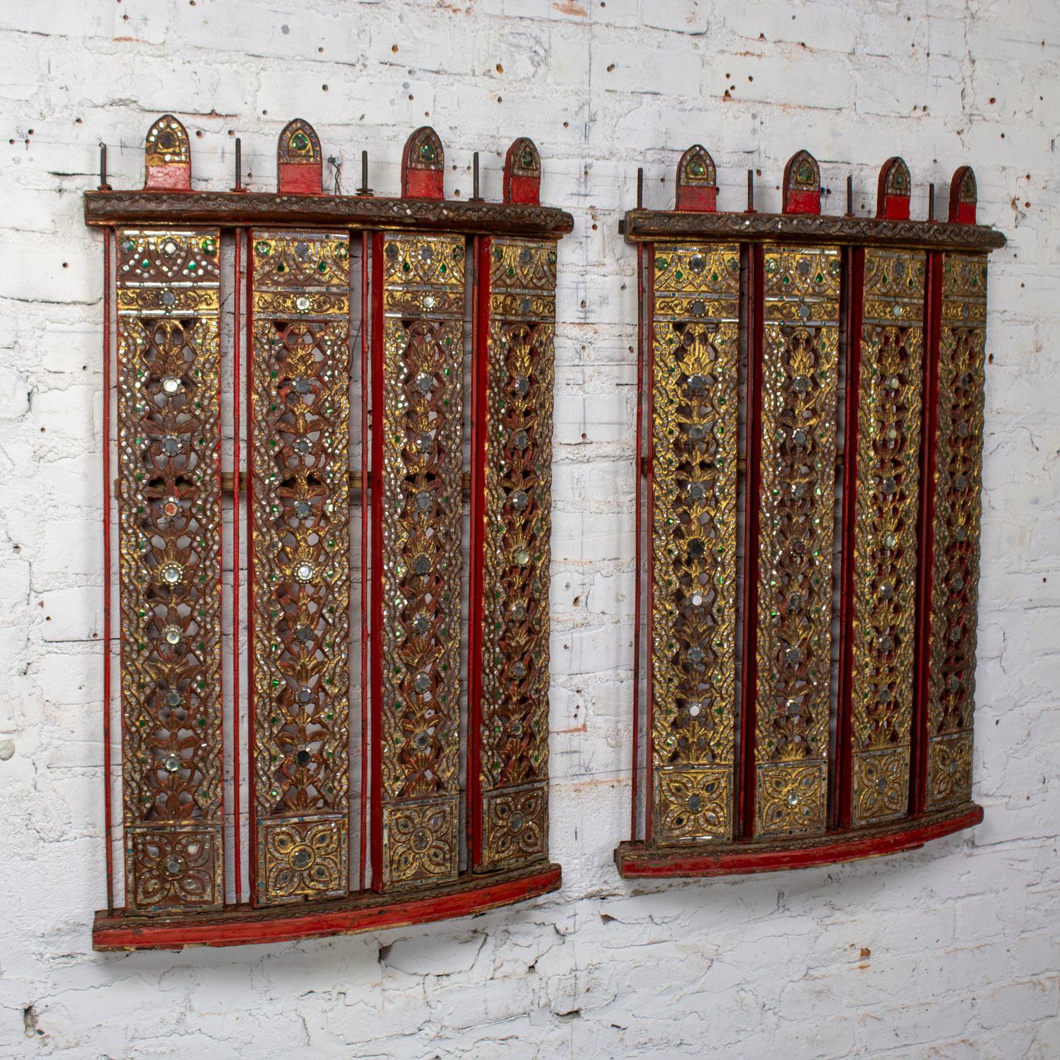 Late 19th to Early 21st Century Antique Burmese Carved Wall Hangings from an Orchestra Hsian Wain Drum a Pair