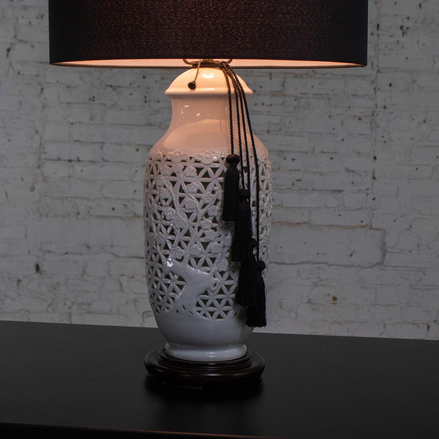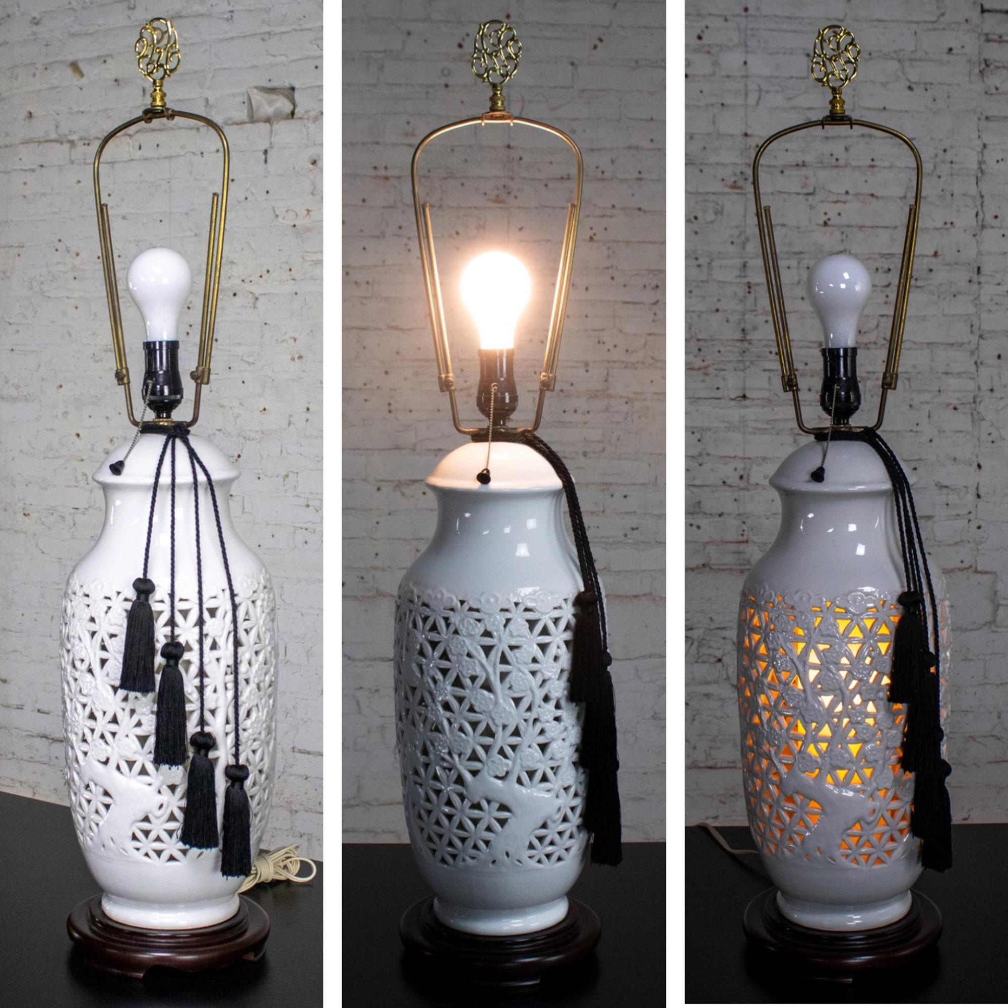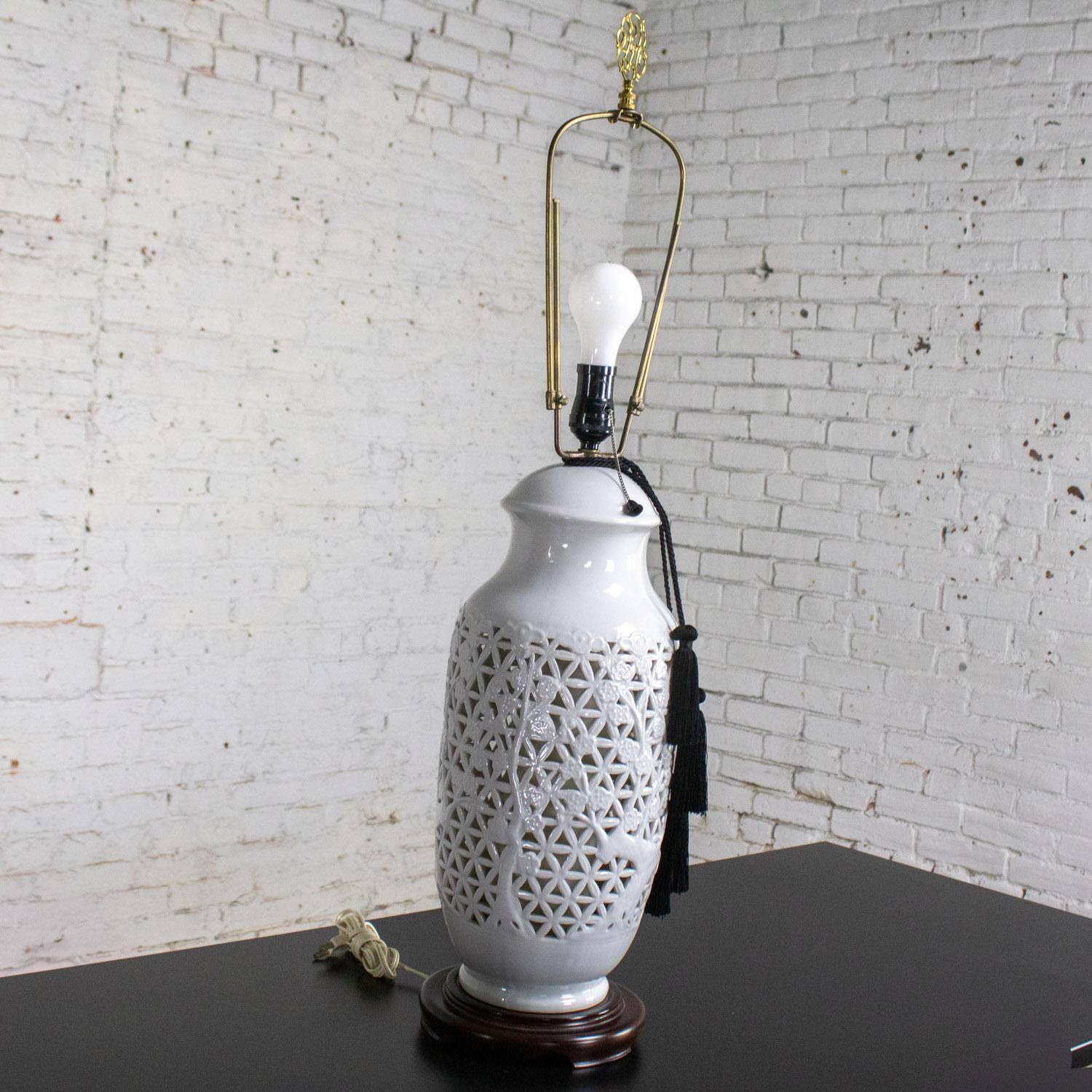 Mid-20th Century Chinoiserie Table Lamp White Pierced Porcelain Blanc De Chine