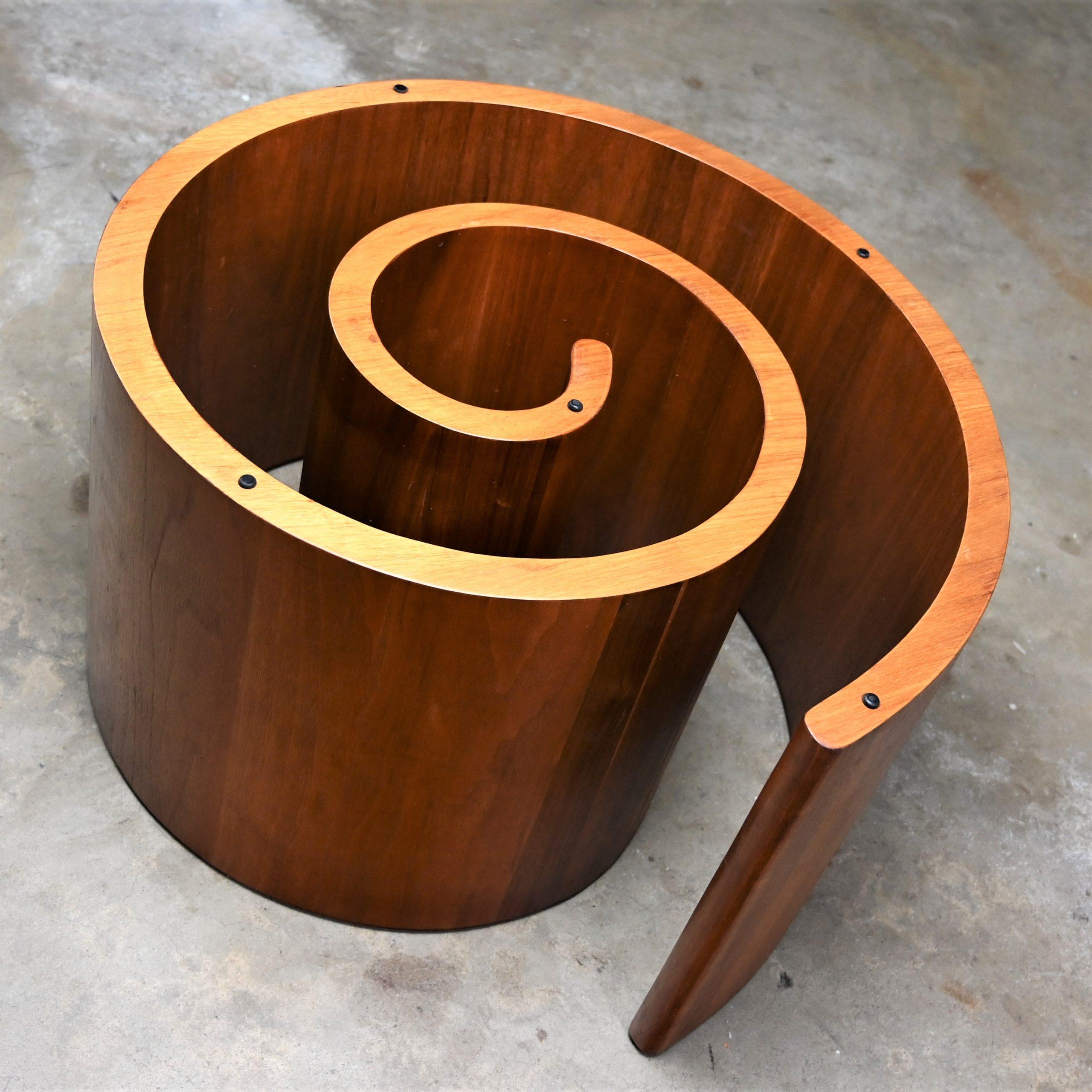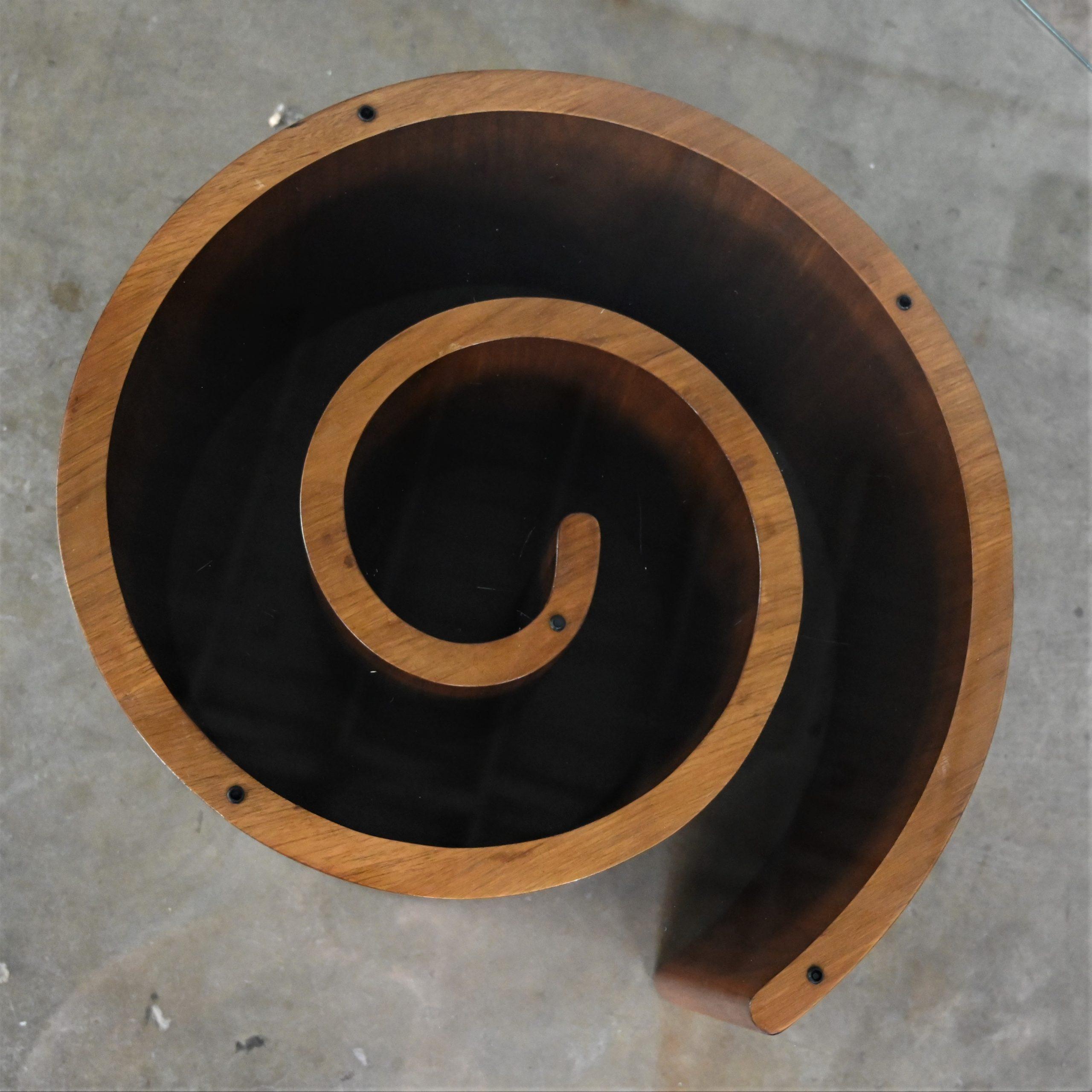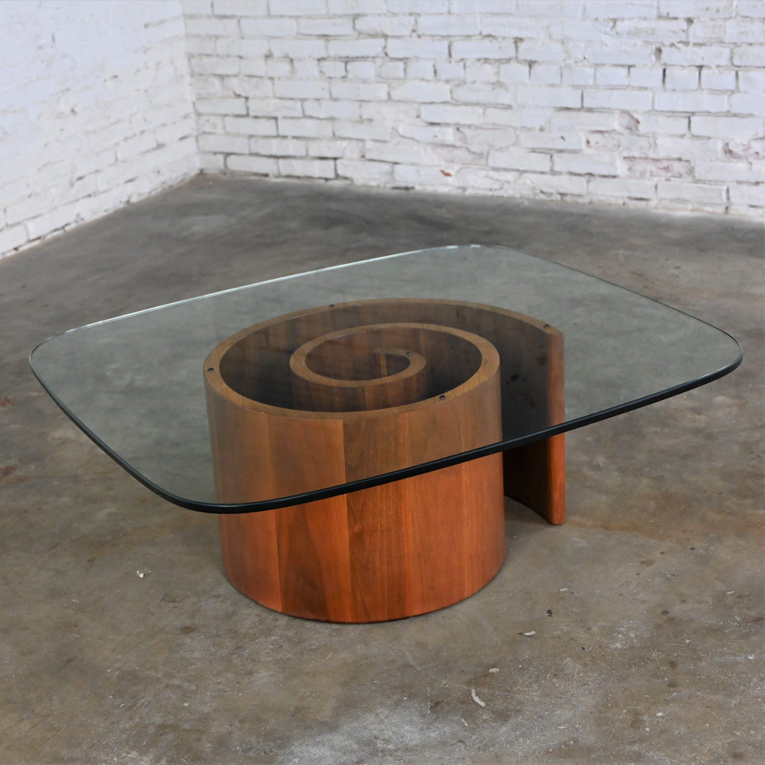 Did you know that there are over 40,000 different types of snails?? And while I’m sure each one is more fabulous than the other, none are quite like this one!! This is a GORGEOUS walnut snail or spiral pedestal base coffee table crowned with a spectacular rectangular rounded corner glass top. It’s Kagan for Selig and it is marvelous!! It’s going to look lovely in your living room in front of the sofa or in the family room among your chaise lounges or pair of club chairs. Adorn it with framed photographs, a sculpture, foliage, or books and magazines. Plus, it’s the perfect place to set your cup of coffee as you read your new book or scroll your favorite social media platform on your phone. It bears a clean, simple, exquisite presence so, whether your design style is modern, postmodern, mid-century modern, Art Deco, or Industrial this spectacular walnut Kagan – Selig design snail or spiral pedestal coffee table is going to blend in beautifully. Don’t you just LOVE it? Well, this is no time to move like a snail. You better pick up the pace… and make it YOURS!!