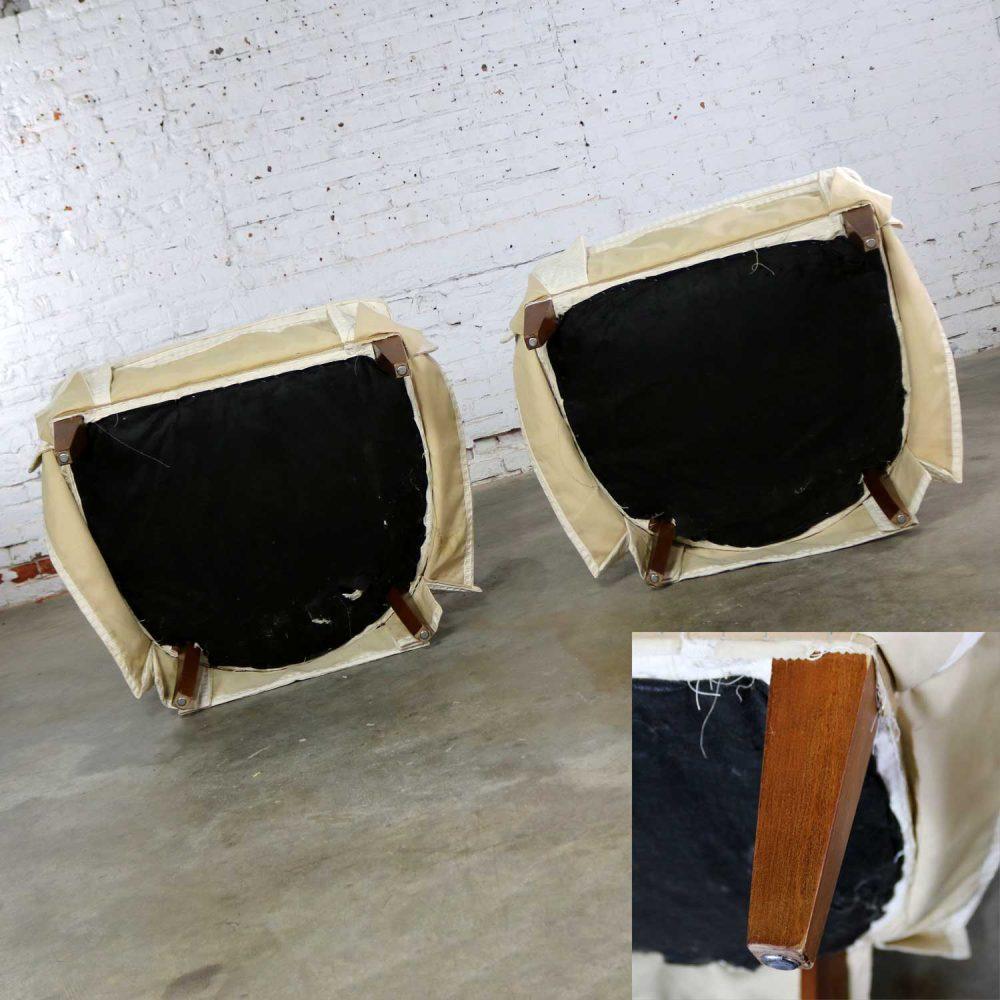Handsome pair of Art Deco or Hollywood Regency slipper chairs. We are offering these as frames only. They are in solid sturdy condition but do need reupholstered. Circa 1950s-1970s.