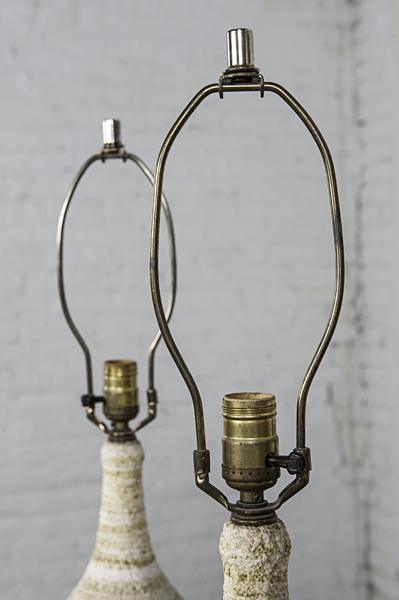 Vintage Pair of Mid-Century Modern Horizontal Striped Ceramic Lamps 9